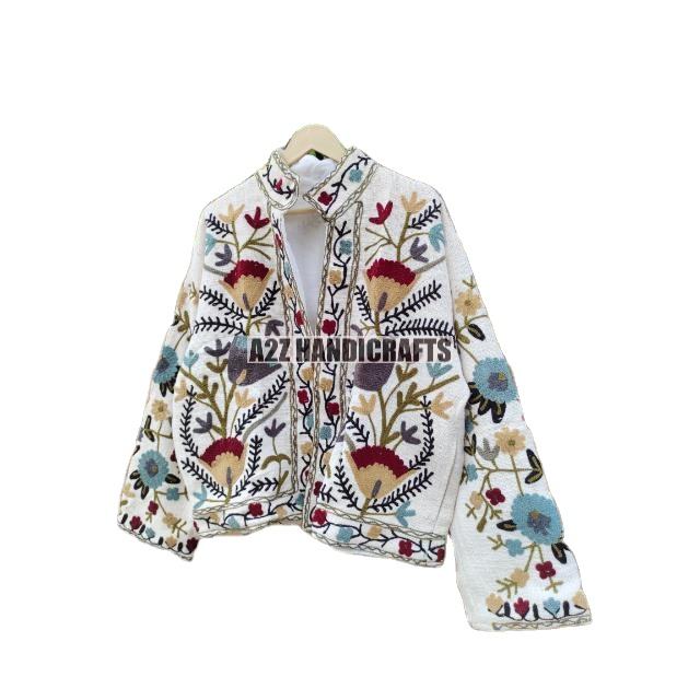 Vente en gros de veste Suzani en coton brodé à la main de meilleure qualité, manteau d'hiver, veste Suzani courte en tissu TNT pour femmes