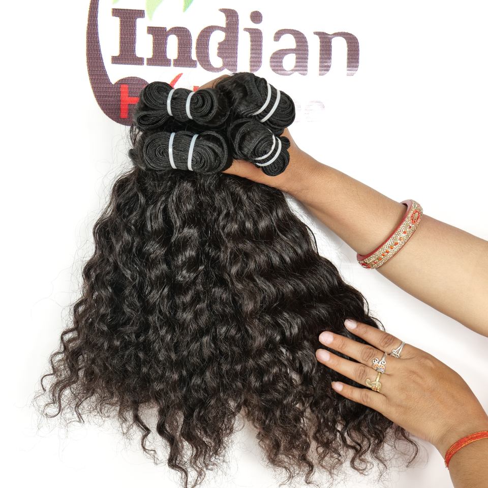 Vente en gros Meilleure Qualité Remy Naturel Noir Couleur Bouclés Tissage Cuticule Aligné Temple Indien Extensions de Cheveux Humains