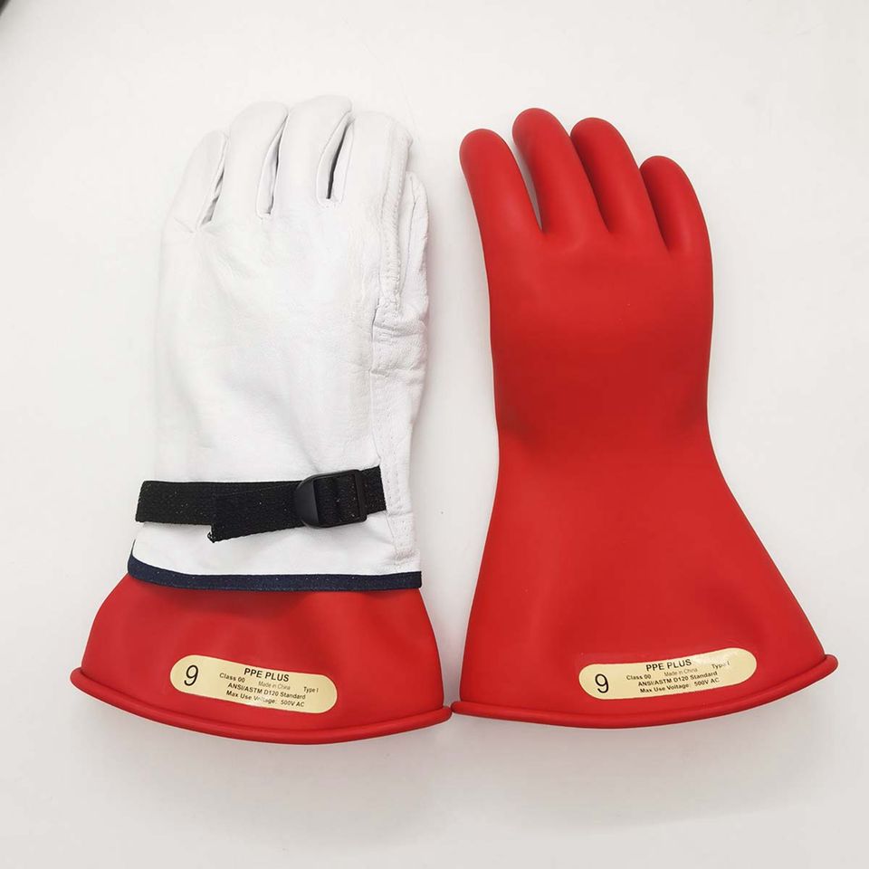 Vente en gros de gants électriques isolants en caoutchouc bicolore classe 00 gants de sécurité 500v pour monteurs de lignes
