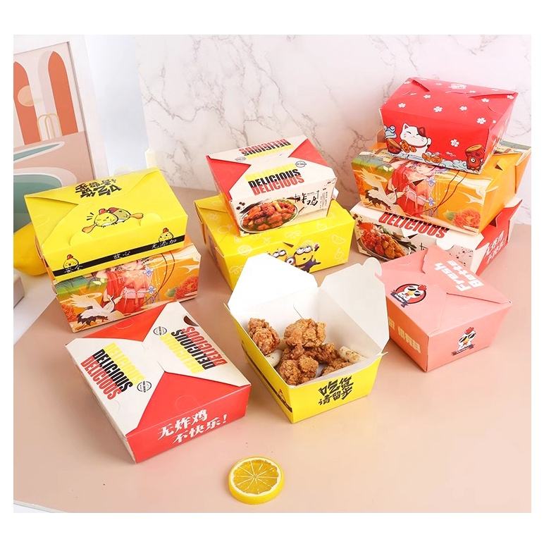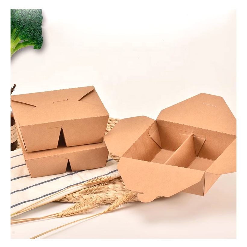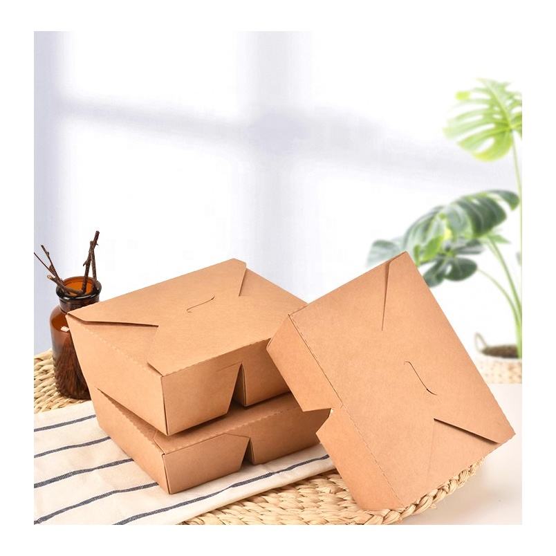 Vente en gros de boîte d'emballage en papier biodégradable à emporter boîte à lunch enduite de cire avec logo personnalisé boîte d'emballage jetable de fast-food