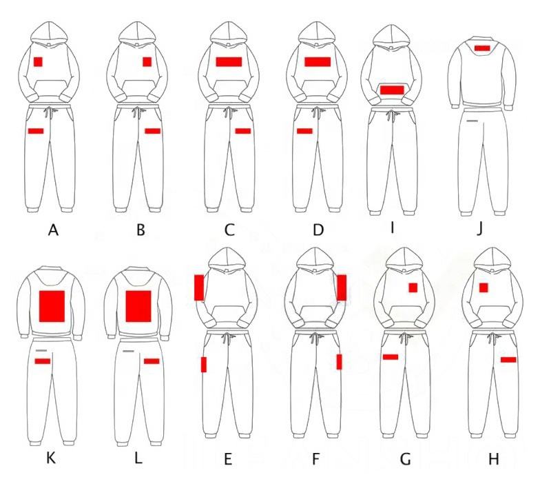 Logo position:Front, back, Left Sleeve, Right Sleeve, lower hem, back neck
