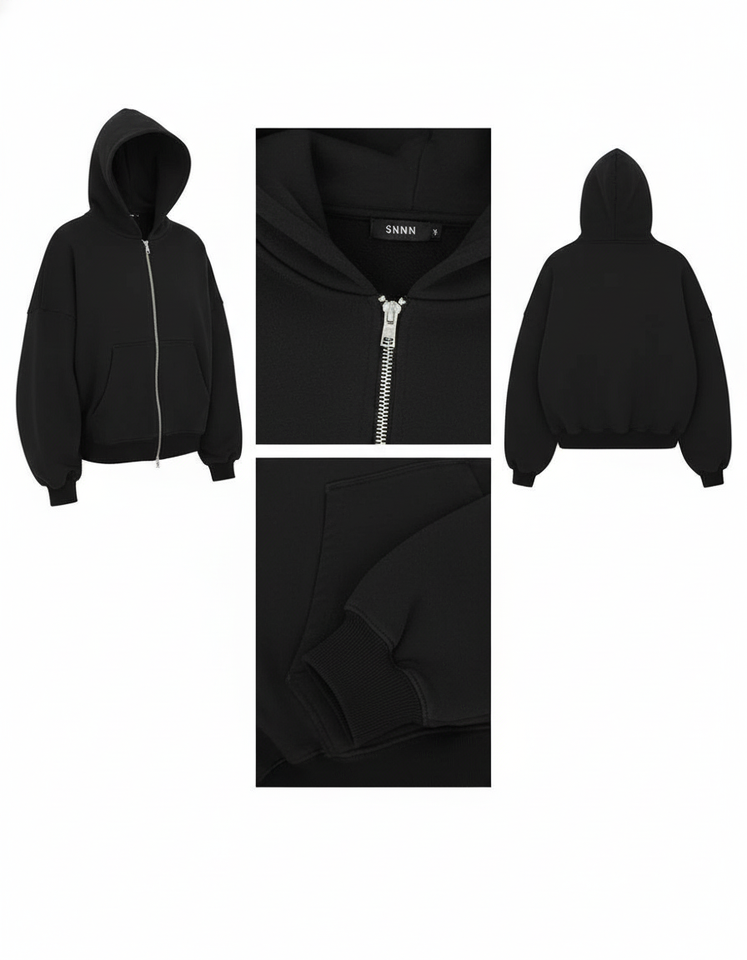 Wholesale Black Oversized Full Zip Hoodie Unisex Warm Fleece Cotton Blend Jacket Sweatshirt Autumn Winter