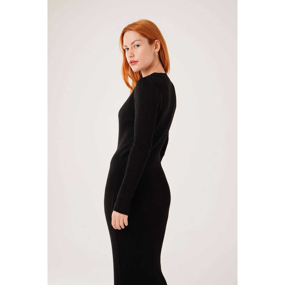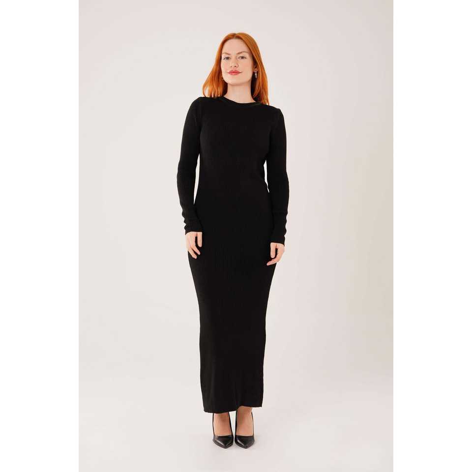 Robe moulante côtelée noire en gros, élément de mode simple, longue en tricot