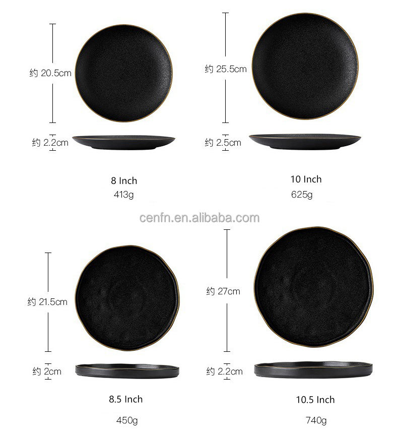 Nom du produit:Assiette à dîner en céramique carrée noire avec bord doré
