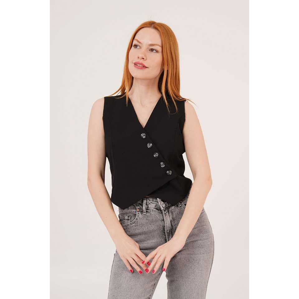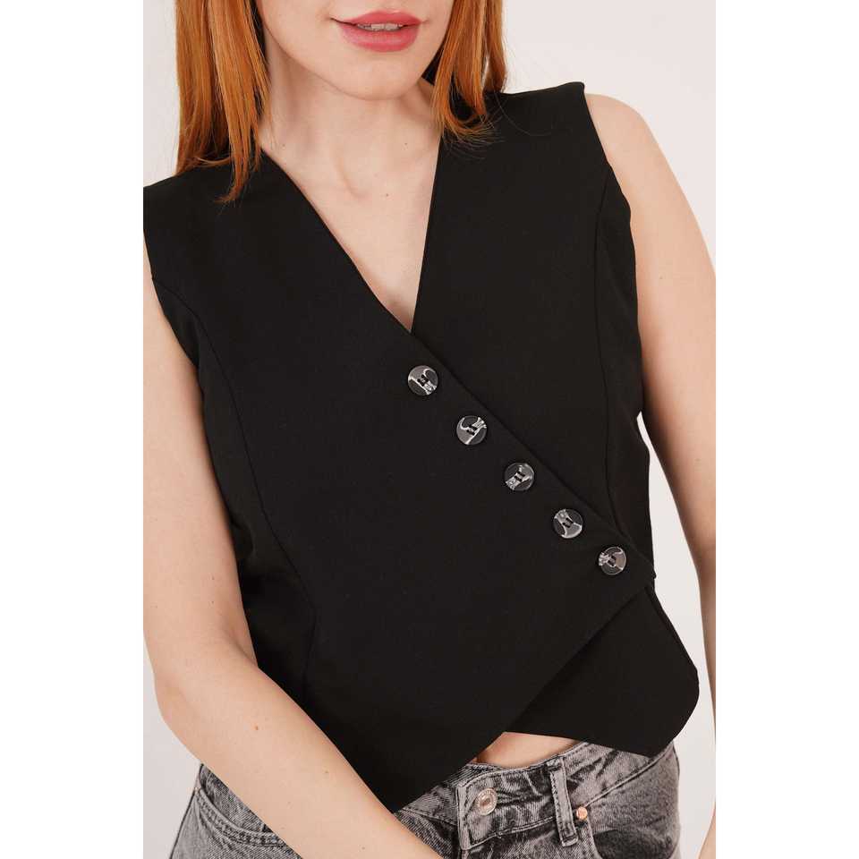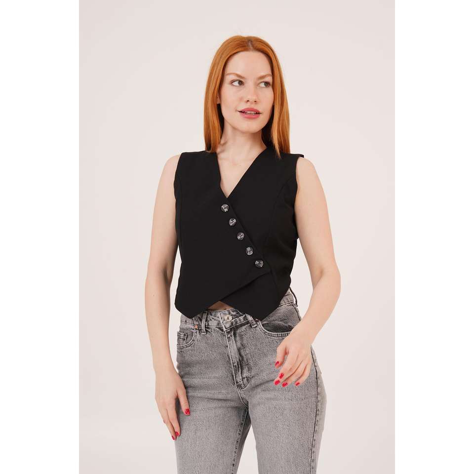 Veste décontractée à col en V noir à boutons, coupe triangulaire, décoration vintage, logo, tricot crocheté, laine tissée, PU