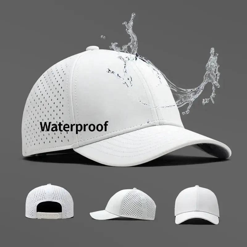 Casquette de course imperméable personnalisée avec logo vierge en gros, casquette de golf pour hommes, casquette de sport de performance, casquette de baseball perforée découpée au laser