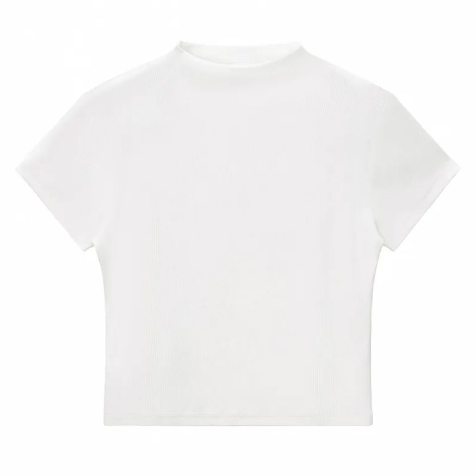 T-shirts courts pour femmes en polyester et élasthanne, personnalisables avec logo, style col montant, pour universités et collèges, vente en gros