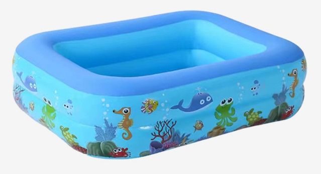 Vente en gros de jouet gonflable carré imprimé bleu blanc piscine intérieure pour la cour parent-enfant nageant avec fond en mousse pour enfants