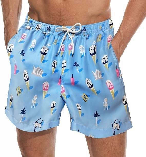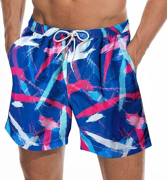Wholesale Board Men's Casual Painted Quick Dry Swim Trunks Mesh Liner Beach Swimming Shorts with Side Pocket