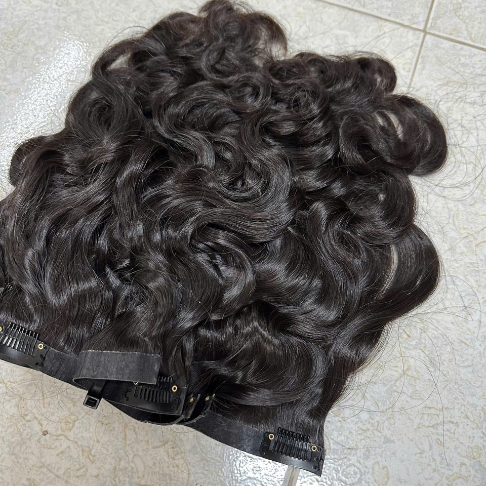 Wholesale Body Wave Curly 100% Raw Black Human Remy Clip in Hair Extensions Seamless Clip in Hair Extension Vietnam Human Hair