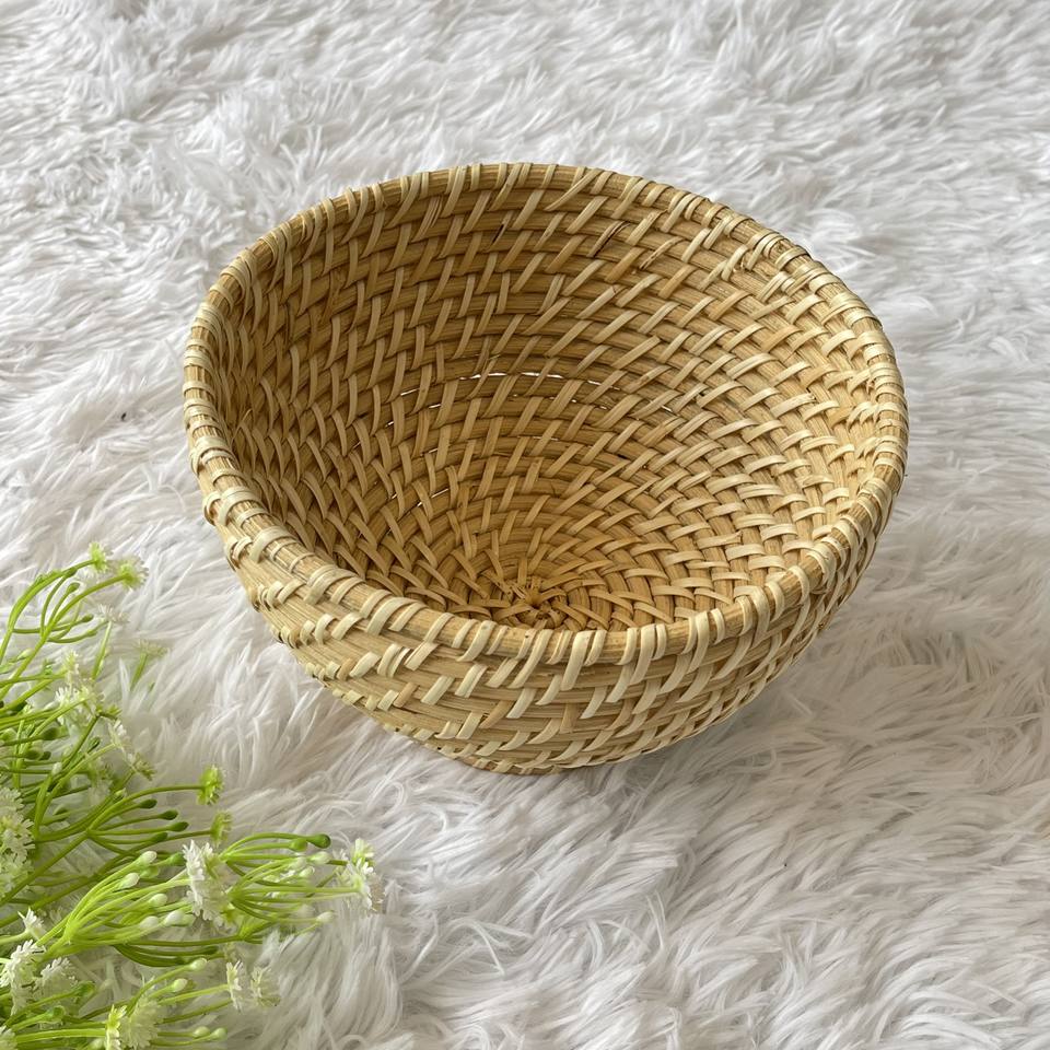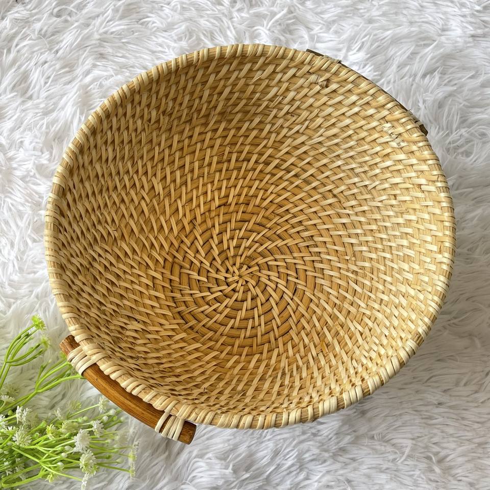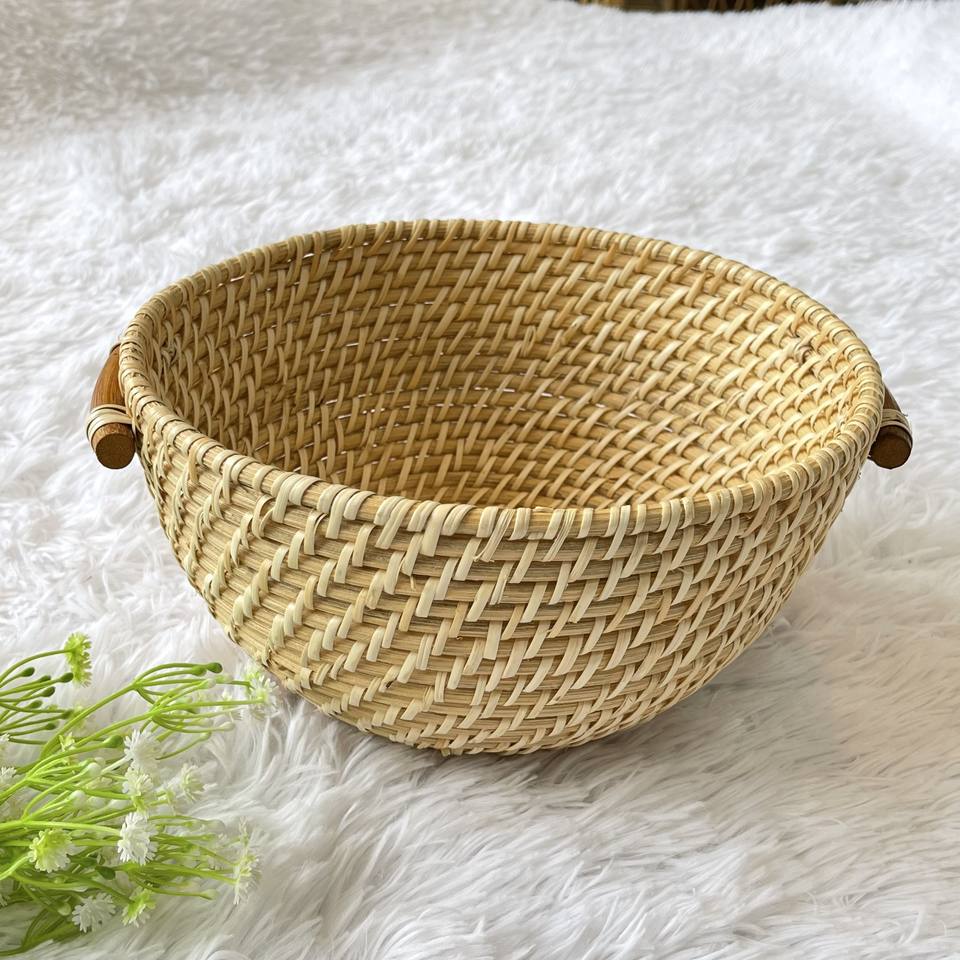 Vente en gros de bols ronds en rotin de style bohème avec poignée, faits à la main, cadeau d'affaires en provenance du Vietnam