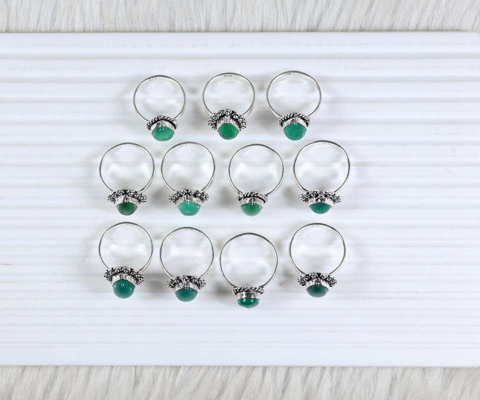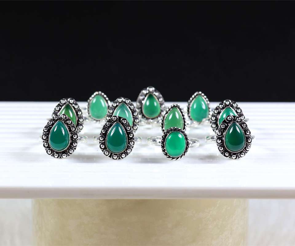 Vente en gros de bagues Boho avec pierre précieuse en onyx vert naturel, style décontracté, bijoux de créateurs en vrac, incrustation de réglage de lunette