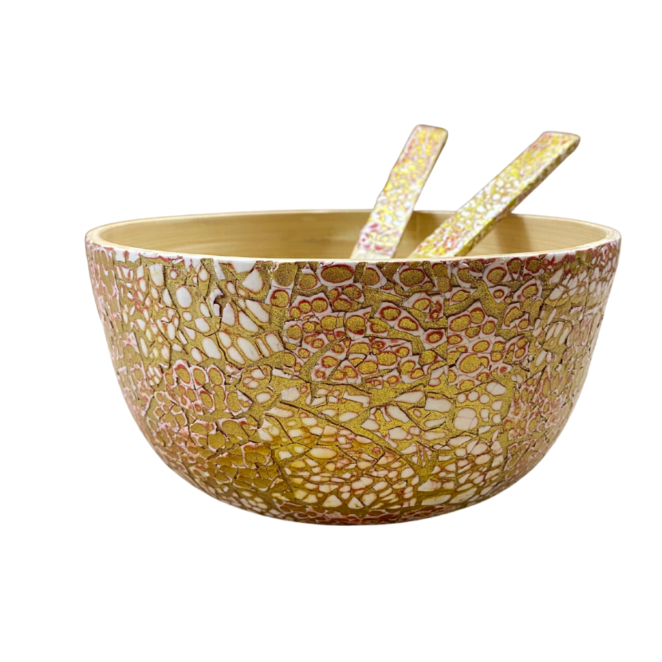 Vente en gros d'ustensiles de cuisine de style boho bol de vadrouille en bambou décoratif bol à salade incrusté poli avec des prix bon marché du Vietnam