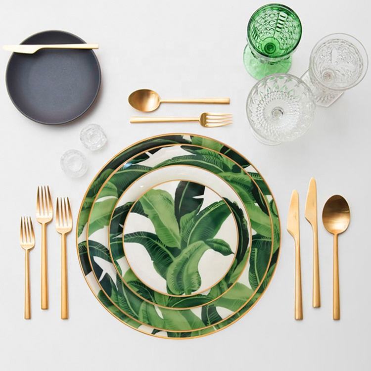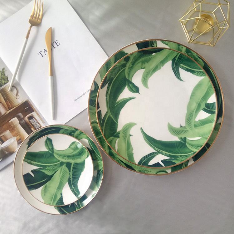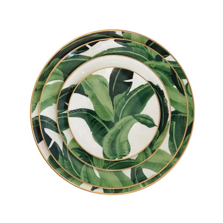 Shape:Bone china palm leaves charger plates