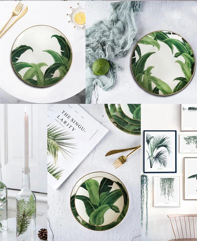 Keyword:Classic fashion bone china palm leaves plate