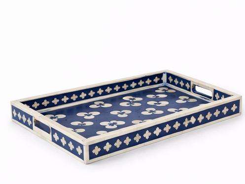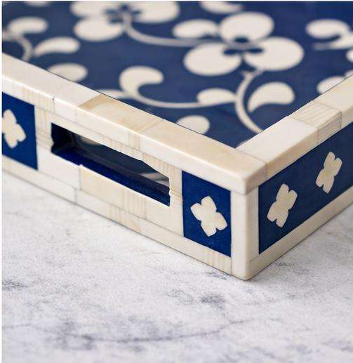 Plateau rectangulaire en os incrusté avec poignées, bleu et blanc, pour la vente en gros - Fournisseur en vrac