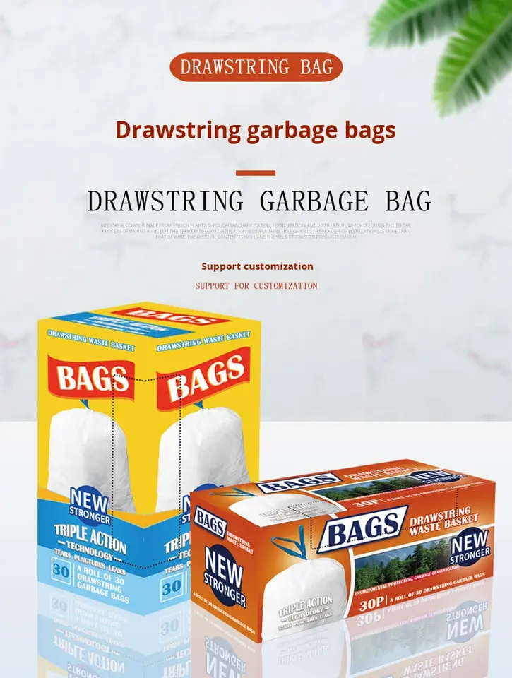 Sacs poubelles en gros avec cordon de serrage pour usage domestique, fermeture automatique, grande taille épaissie, pour le nettoyage