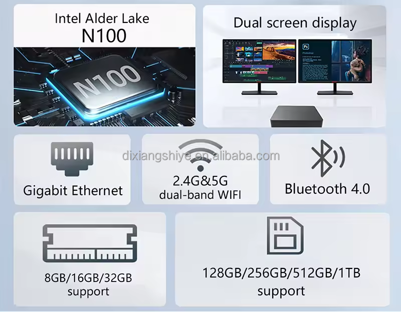 Vente en gros de tout nouveau mini ordinateur de bureau N100 intégré DDR4 8G + 256 Go personnalisé quatre cœurs mini PC hôte