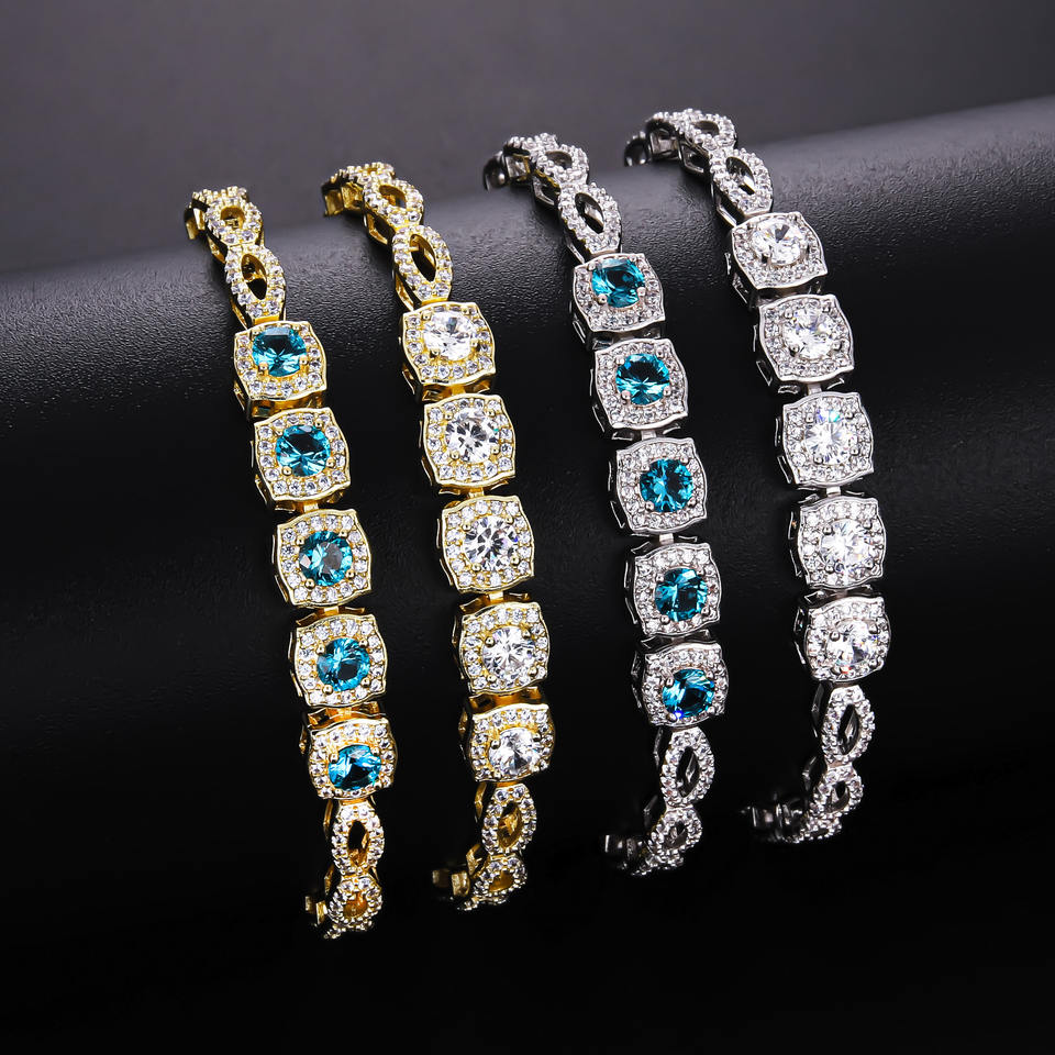 Wholesale Brass Cute Square Custom Fashion Luxury Shining Trendy Zircon Stone Gold Plated Women Bracelet Jewelry Pulsera Joyas