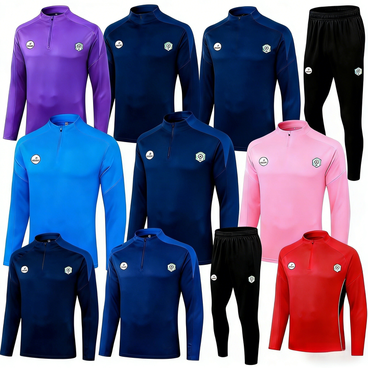 Wholesale Breathable Quick Dry 100% Polyester Men's Adult Soccer Tracksuit Uniform Long Sleeves for Training Football Custom