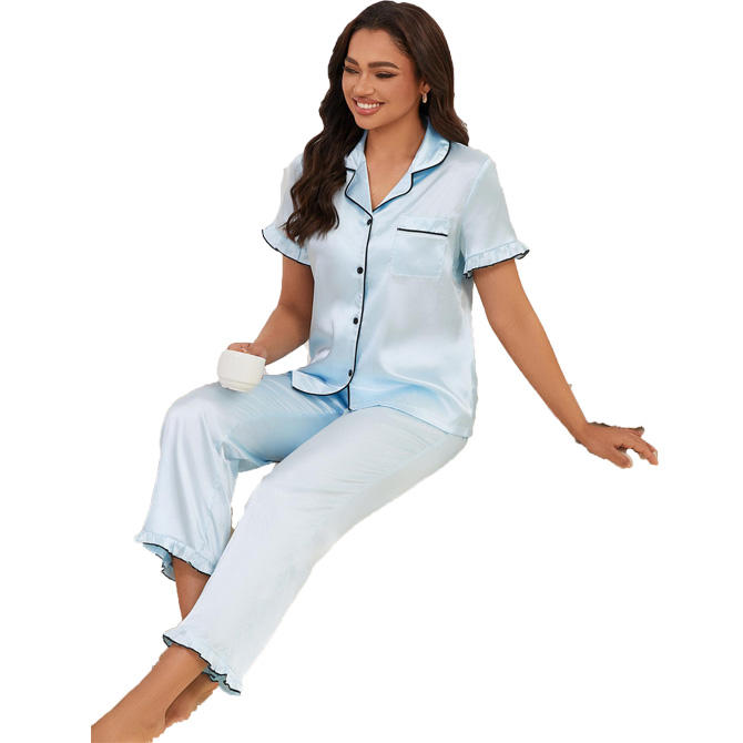 Ensemble de Nuisette en Soie Synthétique Respirante Légère et Antistatique pour Femmes, Idéal pour les Nuits Chaudes, Deux Pièces