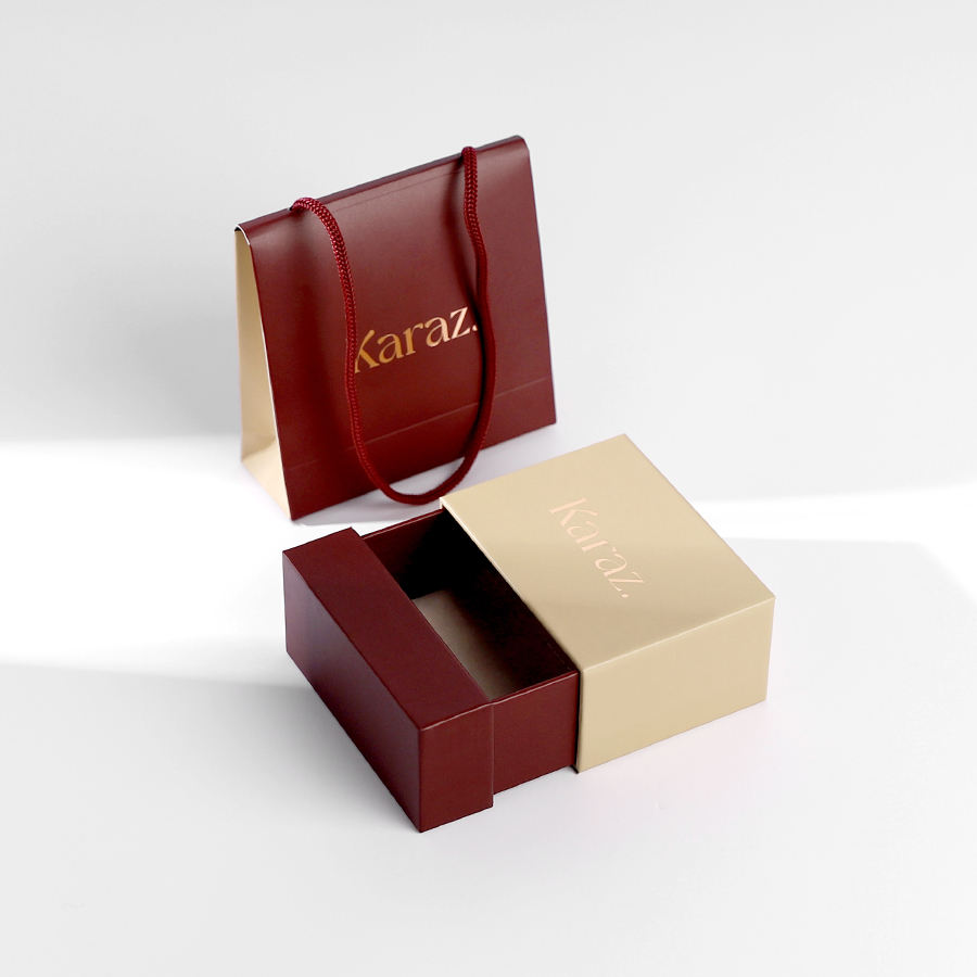 Boîte à bijoux en papier brun en gros avec gaufrage d'estampage en feuille d'or-Logo à bas prix personnalisable pour le stockage de bijoux de bague
