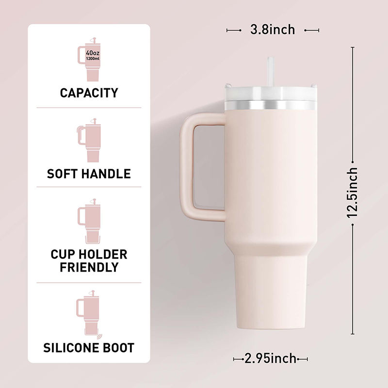 Gobelet isotherme en acier inoxydable de 40 oz, personnalisable, nouvelle couleur, avec poignée, couvercle, paille et affichage LED de la température, anti-fuite, vente en gros