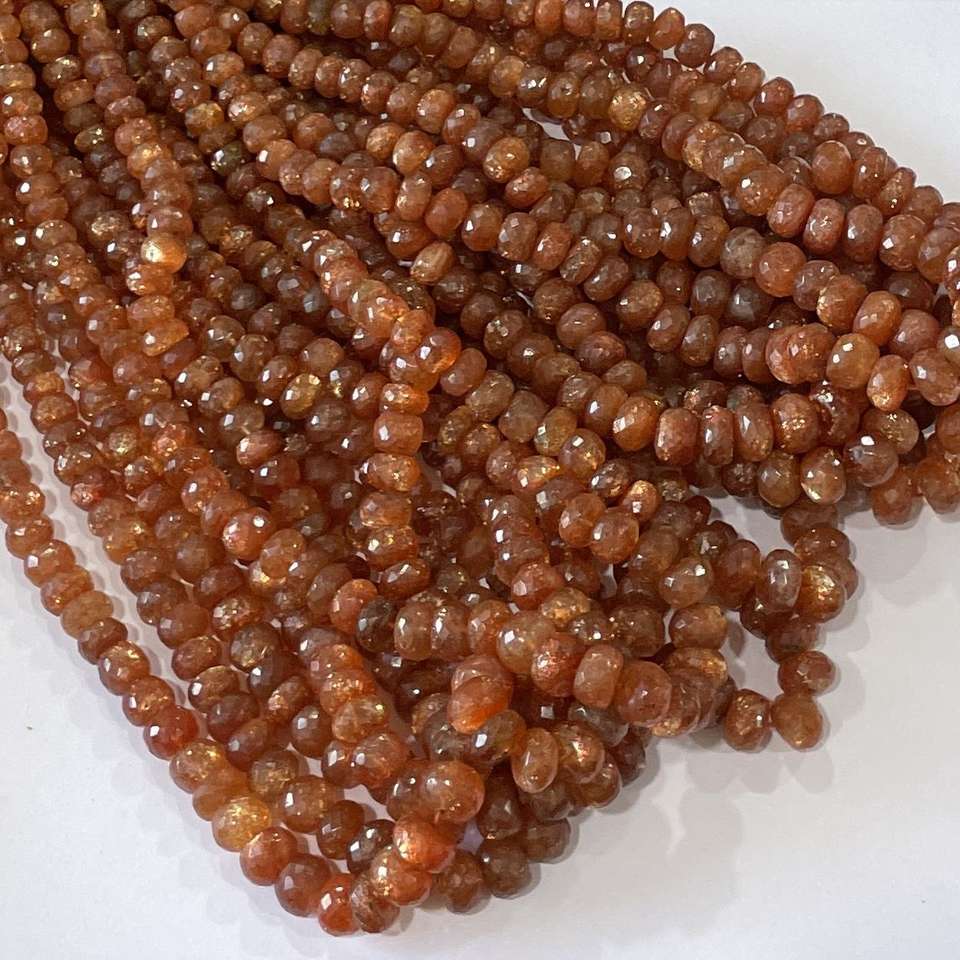 Wholesale Bulk 8mm 10mm 12mm Natural Orange Sunstone Faceted Rondelle Stone Beads Semi-Precious for Jewelry Making