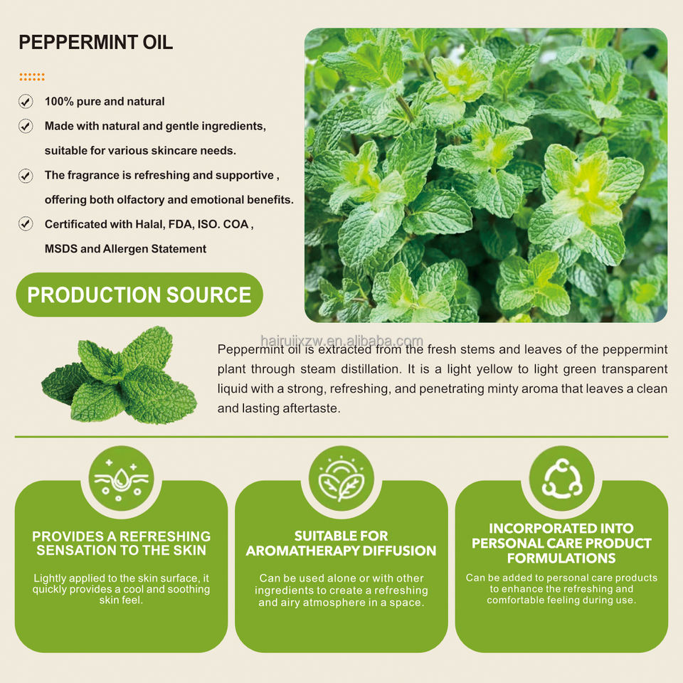 Huile essentielle de menthe poivrée en vrac pour l'aromathérapie, huile de menthe poivrée pure et naturelle pour diffuseur d'arômes et vaporisateur