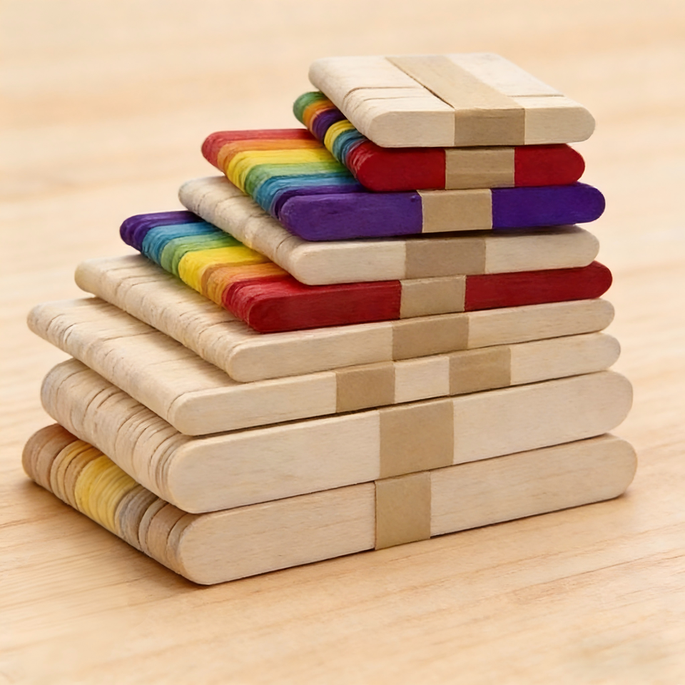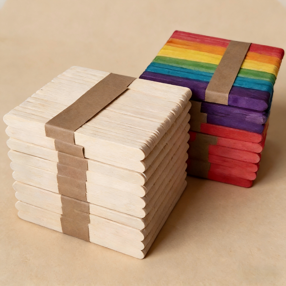 Bâtonnets de glace en bambou colorés en vrac, biodégradables et sûrs, pour la construction de modèles et les activités éducatives