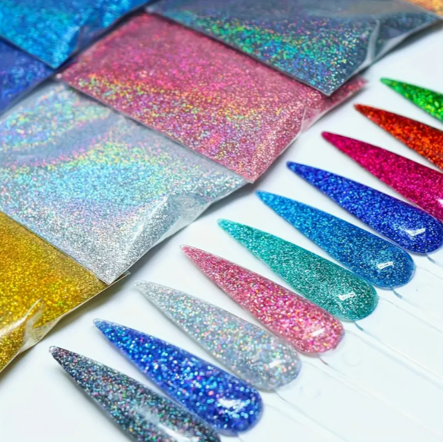 Vente en gros de poudre de polyester pailletée fine pour Nail Art, pigments en vrac pour la décoration de Noël