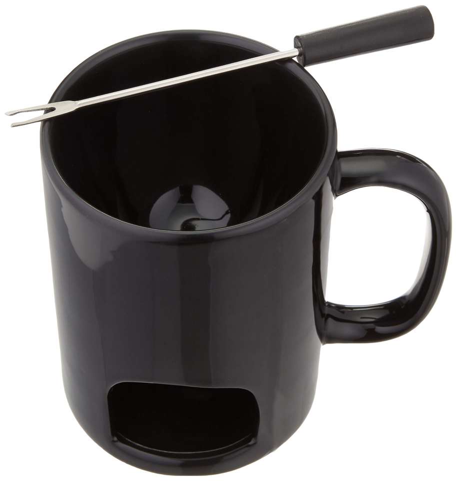 Lot de Gros Personnalisé : Coffret Cadeau de Mugs à Fondue en Céramique Noire pour Fromage et Chocolat