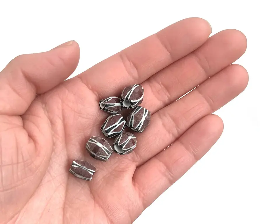 Perles de verre Chevron brun foncé à grand trou en vrac, fabrication de bijoux à bricoler soi-même, perles à baril ovale en cristal, perles de verre au chalumeau