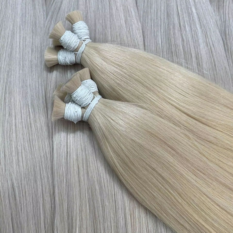 Vente en gros d'extensions de cheveux humains teints en blond clair Remy de haute qualité paquets de trame de tressage droits