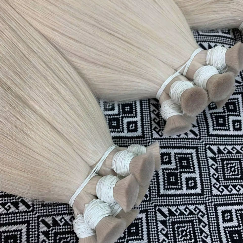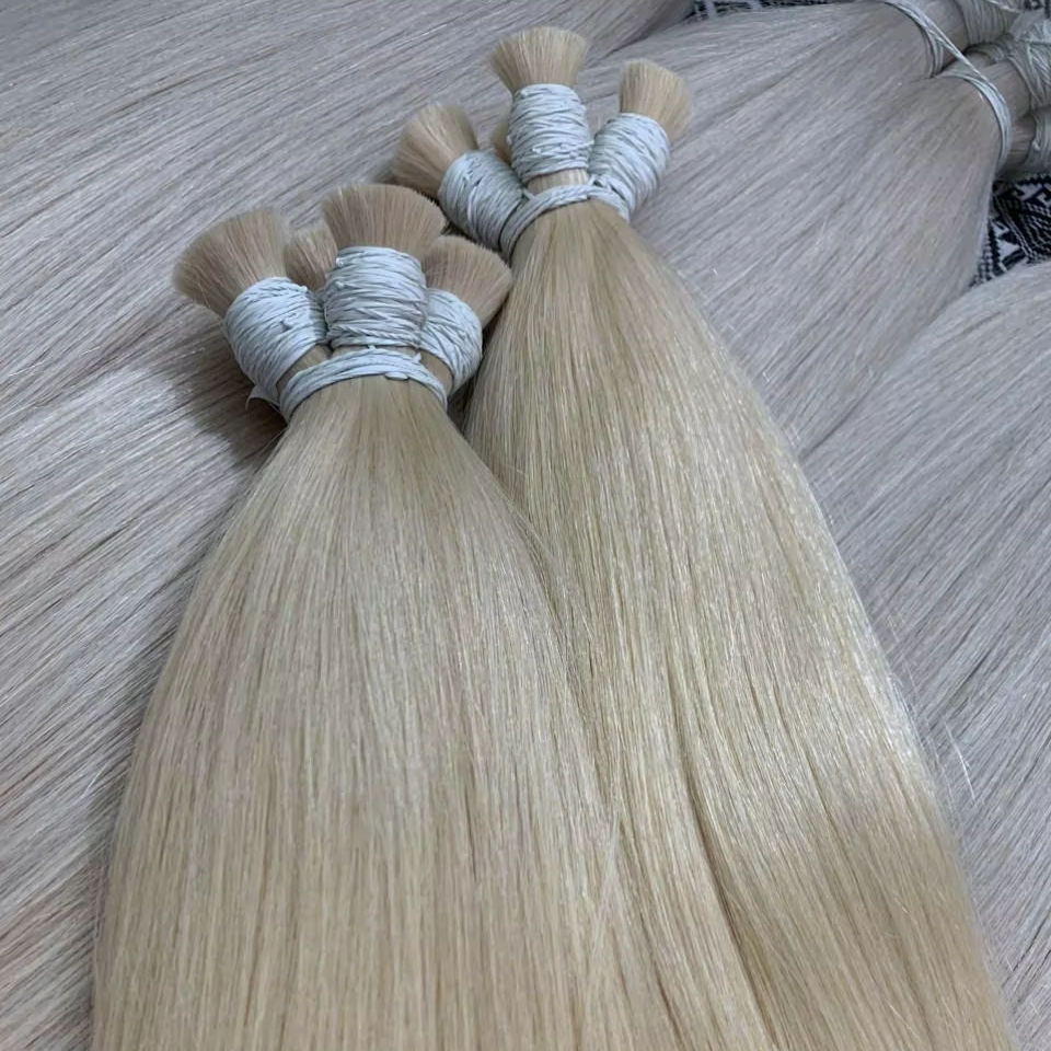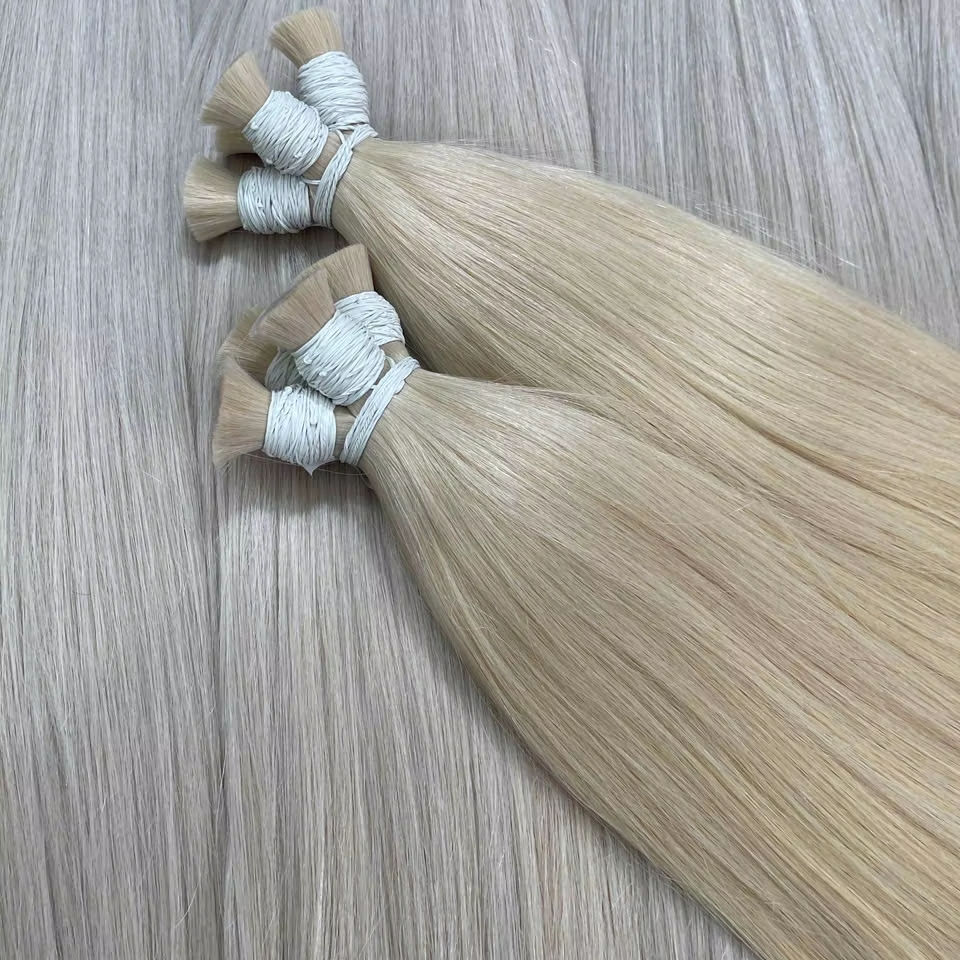Vente en gros d'extensions de cheveux humains teints en blond clair Remy de haute qualité paquets de trame de tressage droits