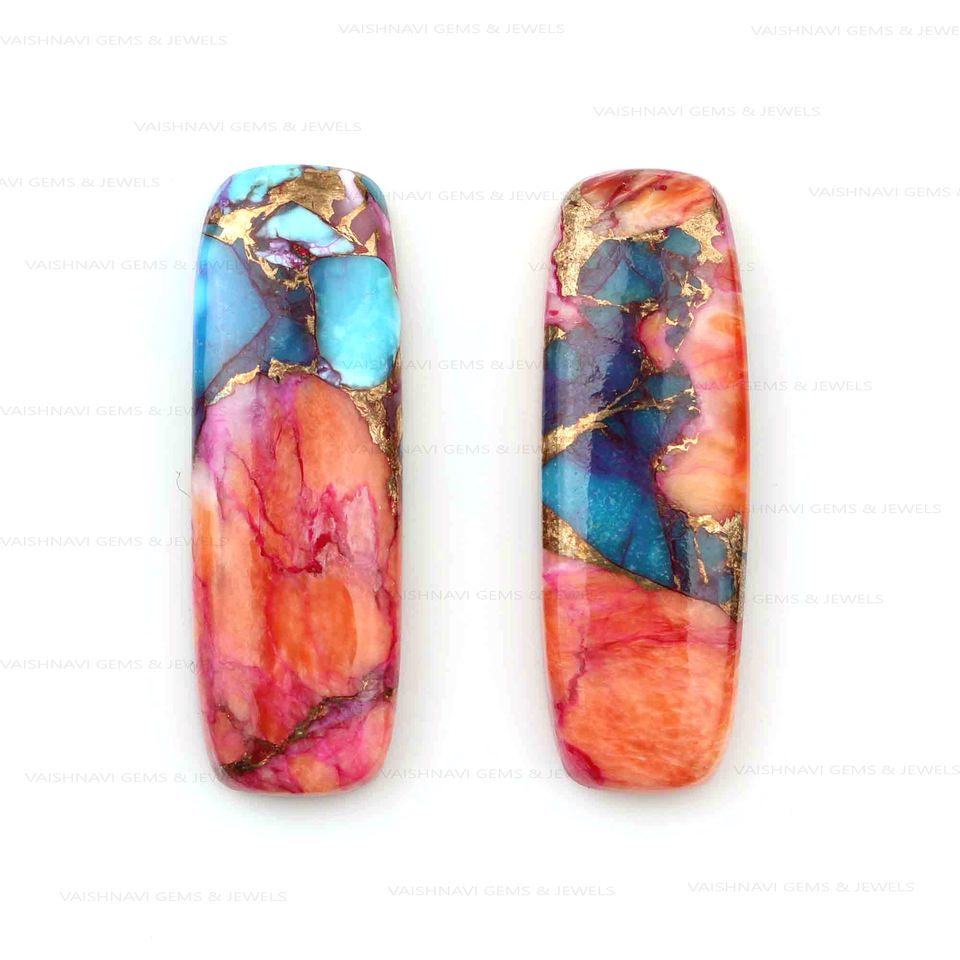 Product Name:Natural Orange Dahlia Copper Turquoise Long Cushion Cabochon
