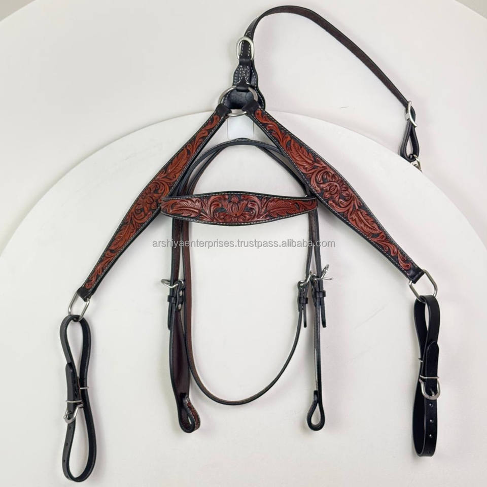 Product name:Hand Tooled Leather Horse Headstall Horse Breast Collar Set