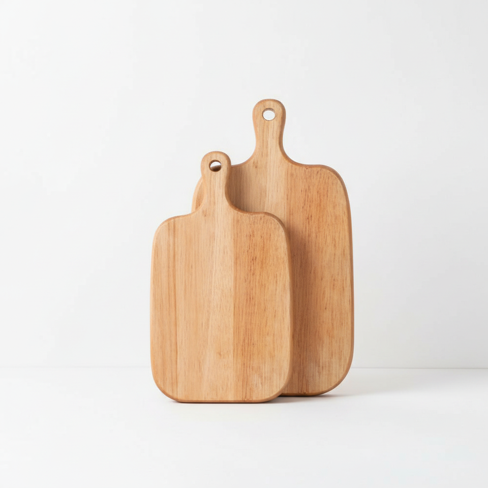 Assiettes rectangulaires en bois de caoutchouc personnalisées en gros avec poignées pour le pain, la pizza et les aliments pour bébés