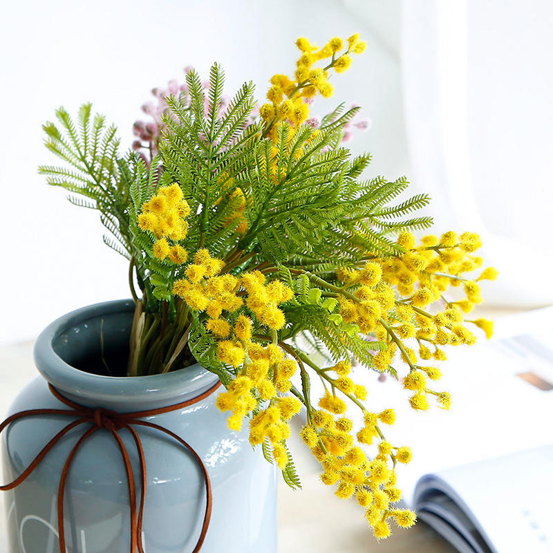 Lot en gros de fleurs artificielles modernes en plastique, colorées et façonnées, imitation graines d'acacia, réutilisables et recyclables, pour décoration de mariage et d'intérieur