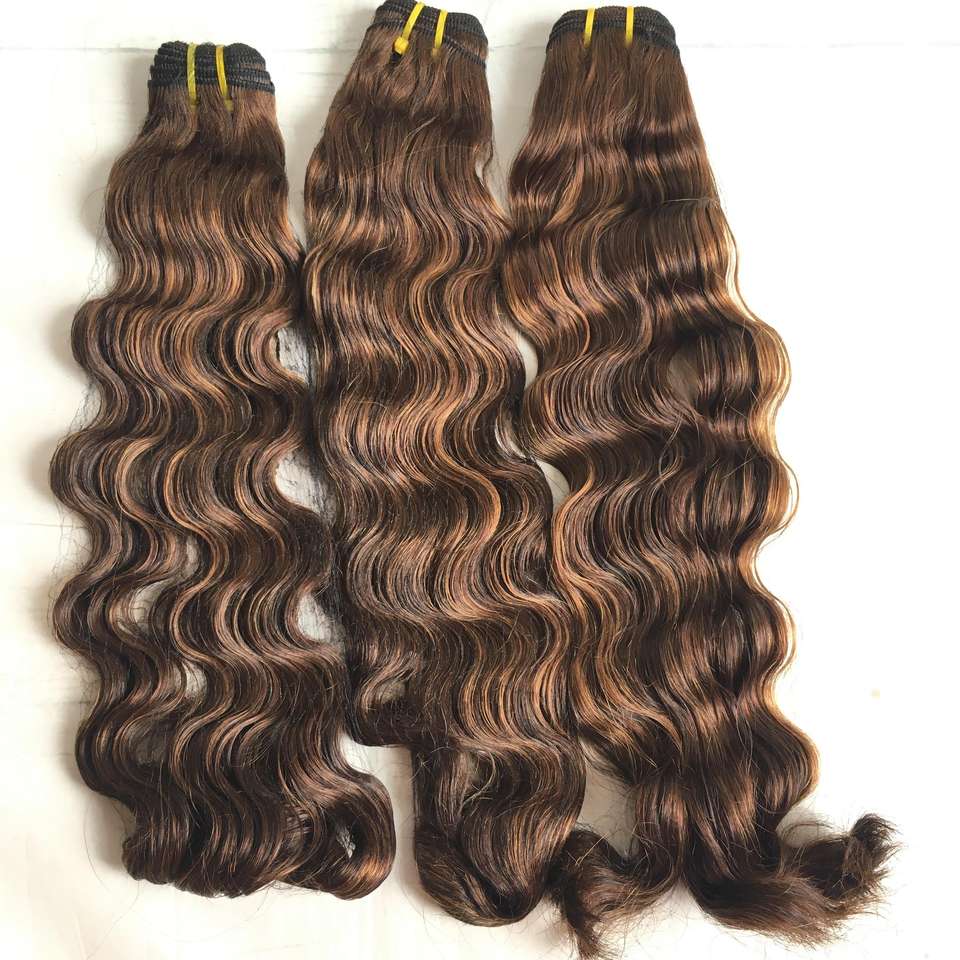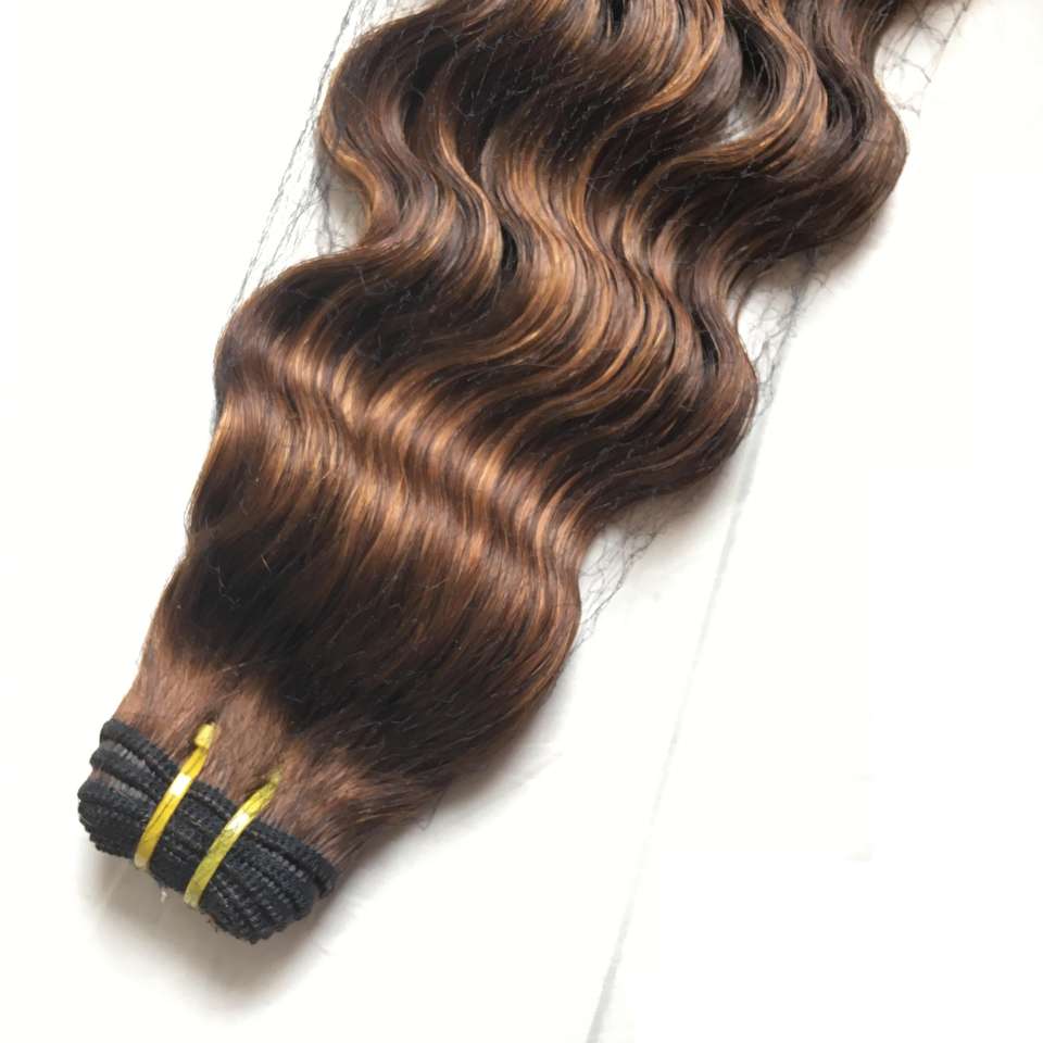 Bundle avec fermeture disponible océan ondulé surbrillance brun 100 cheveux bruts humains Remy tissage extensions de cheveux humains vente en gros