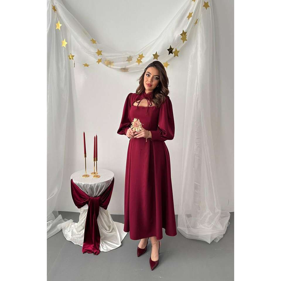Wholesale Burgundy Lace-Up Floor-Length Evening Dress Formal A-Line Ball Gown with Scoop Collar for Parties Formal Occasions