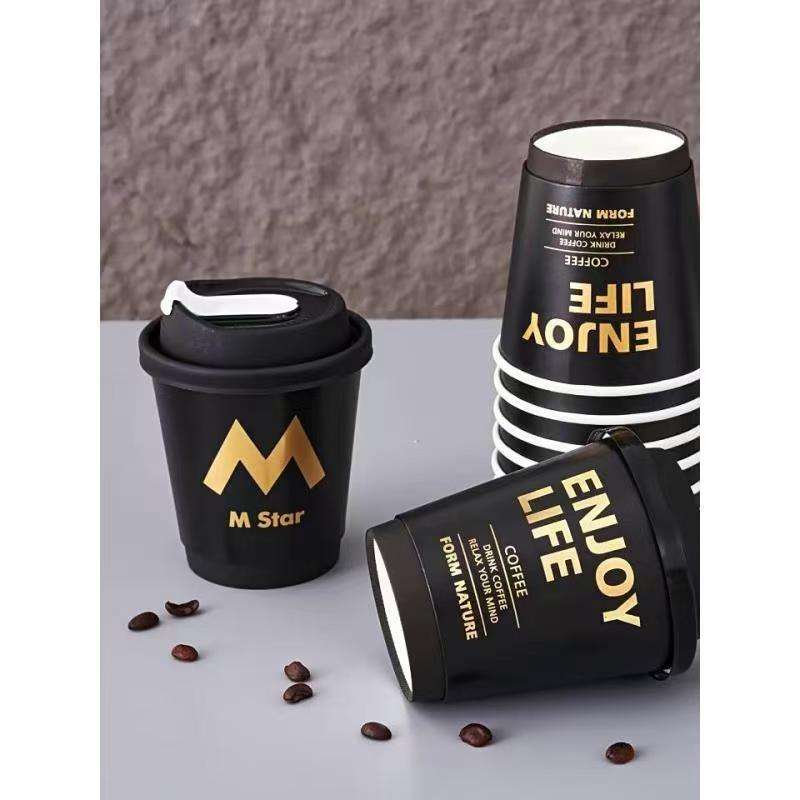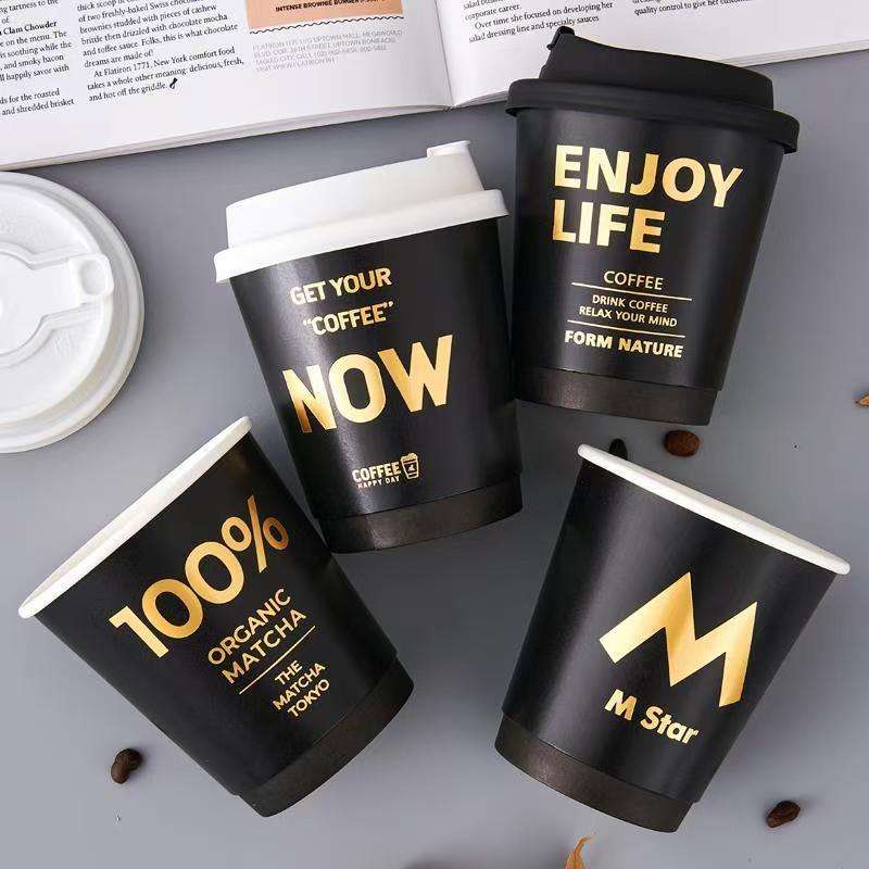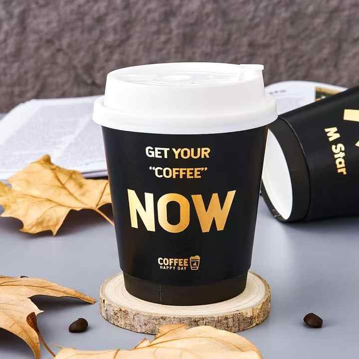 Wholesale Cafe Disposable Double Wall Food Grade 12oz/10oz Hot Drink Custom Logo Paper Cups with Lid