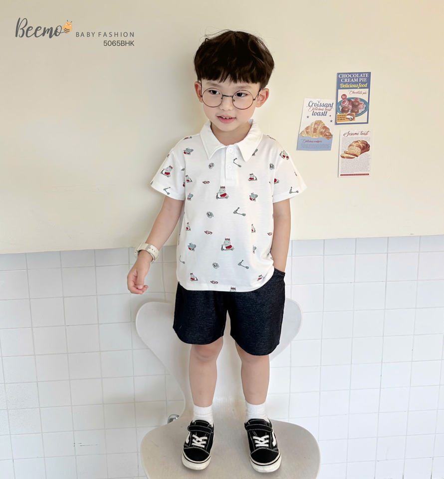 Wholesale Canvas Baby Clothing Sets for Boys Summer Casual Two-Piece Suit with Short Sleeve & Cartoon Print for Kids