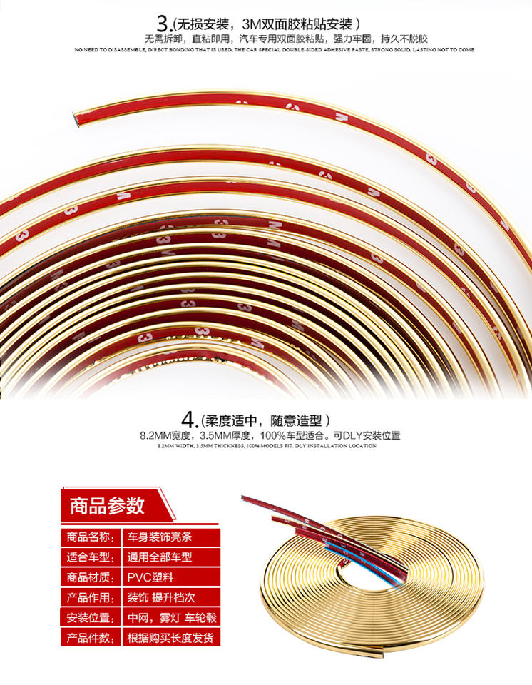 Moulures de style de voiture, protecteur de jantes, bande décorative, PVC, moulure, autocollant, garniture de voiture, véhicule couleur, ligne de protection des pneus 8M