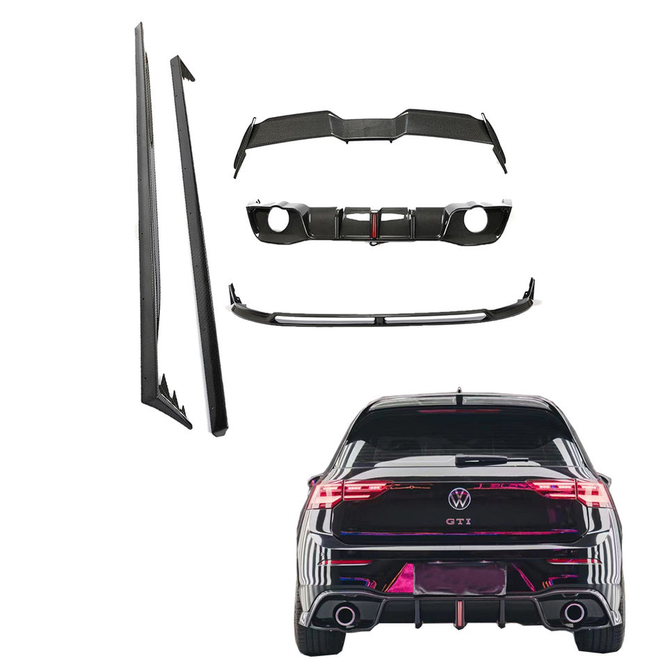 Jupe latérale de diffuseur arrière de lèvre avant de fibre de carbone en gros pour le becquet arrière de hayon de Golf 8