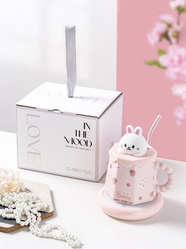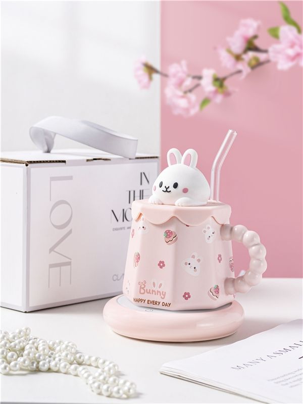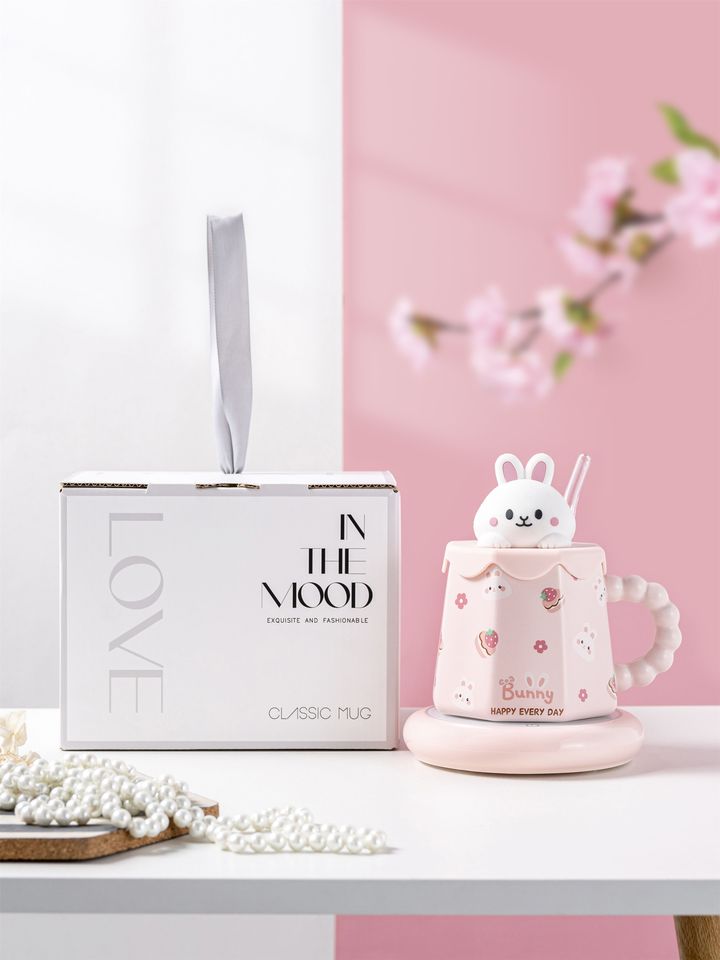 Vente en gros de tasses à bec pour enfants, mignonnes, en céramique, avec couvercle, motif lapin 3D, 400 ml, pour le petit-déjeuner, sublimation