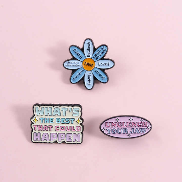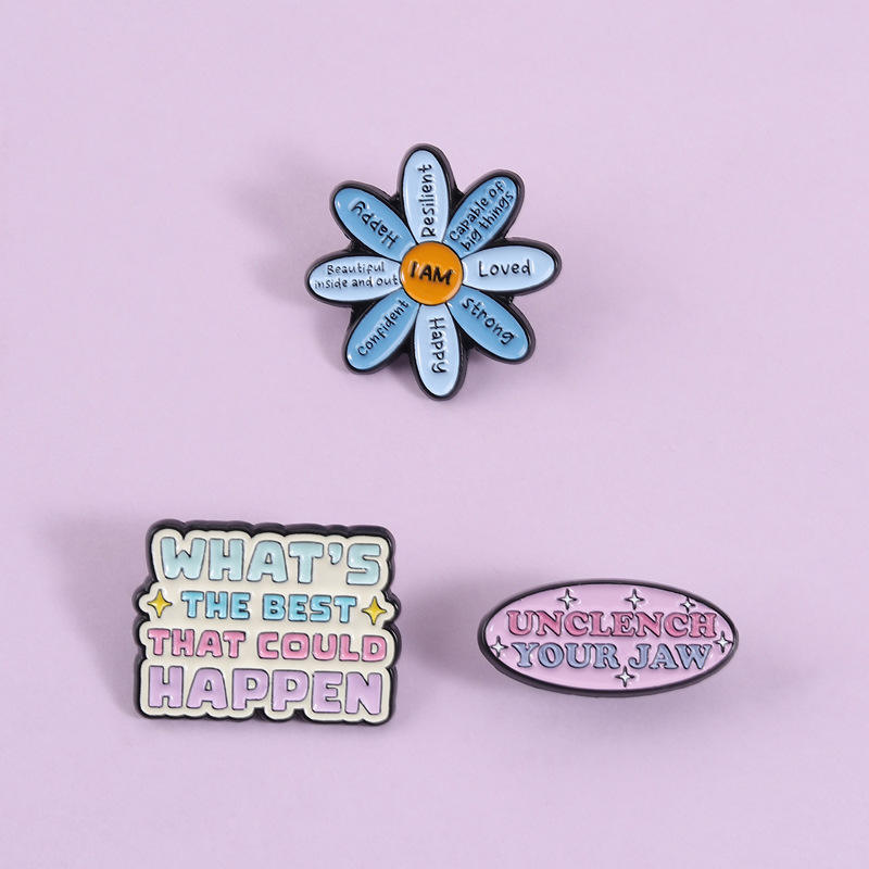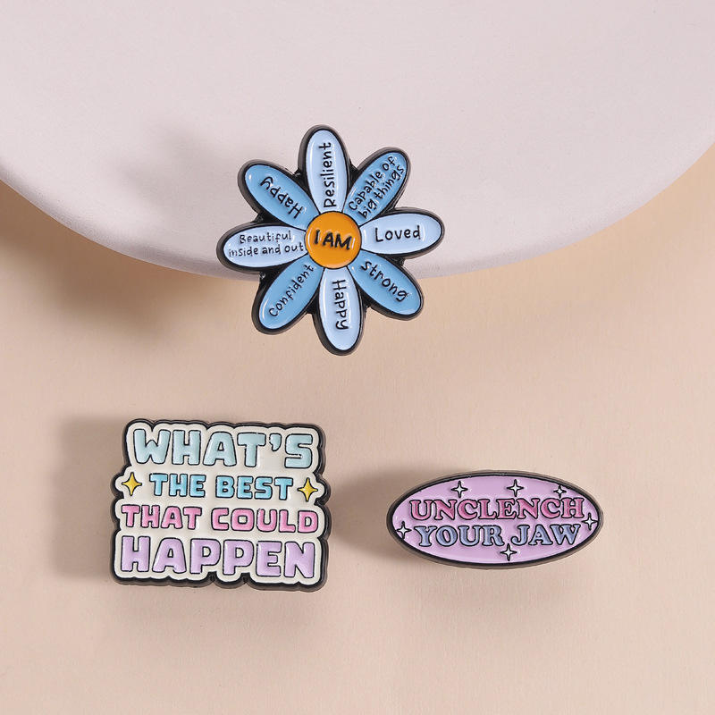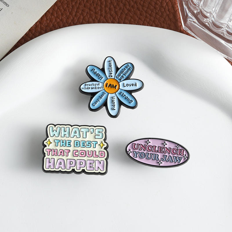 Lot de badges émaillés souples avec affirmations positives, motifs floraux et citations inspirantes pour cadeaux promotionnels