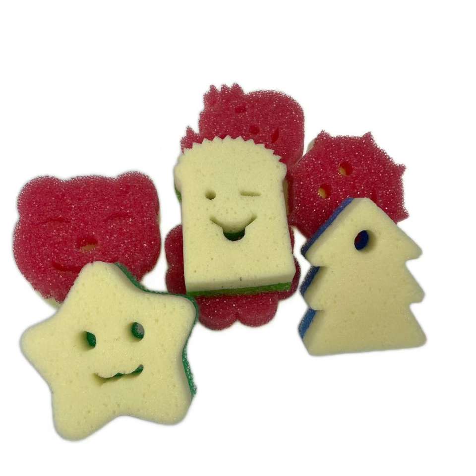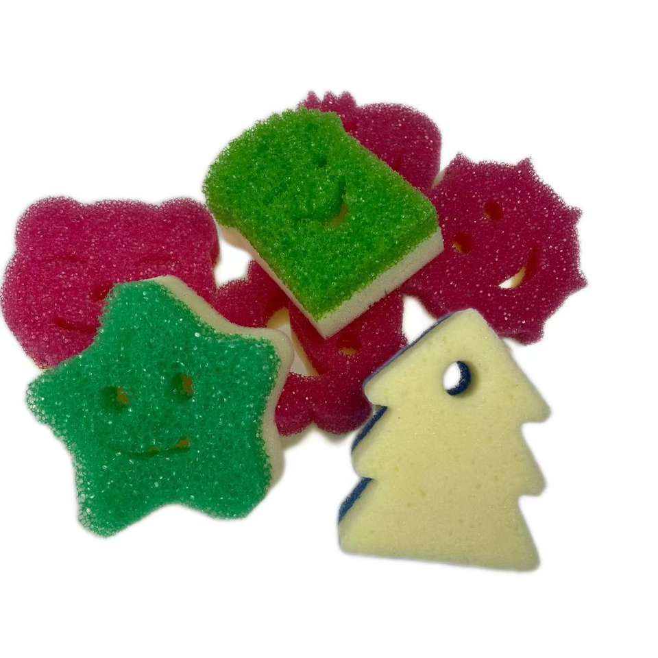 Éponge de cuisine en forme d'arbre de Noël, multicolores, avec un visage souriant de dessin animé, en gros