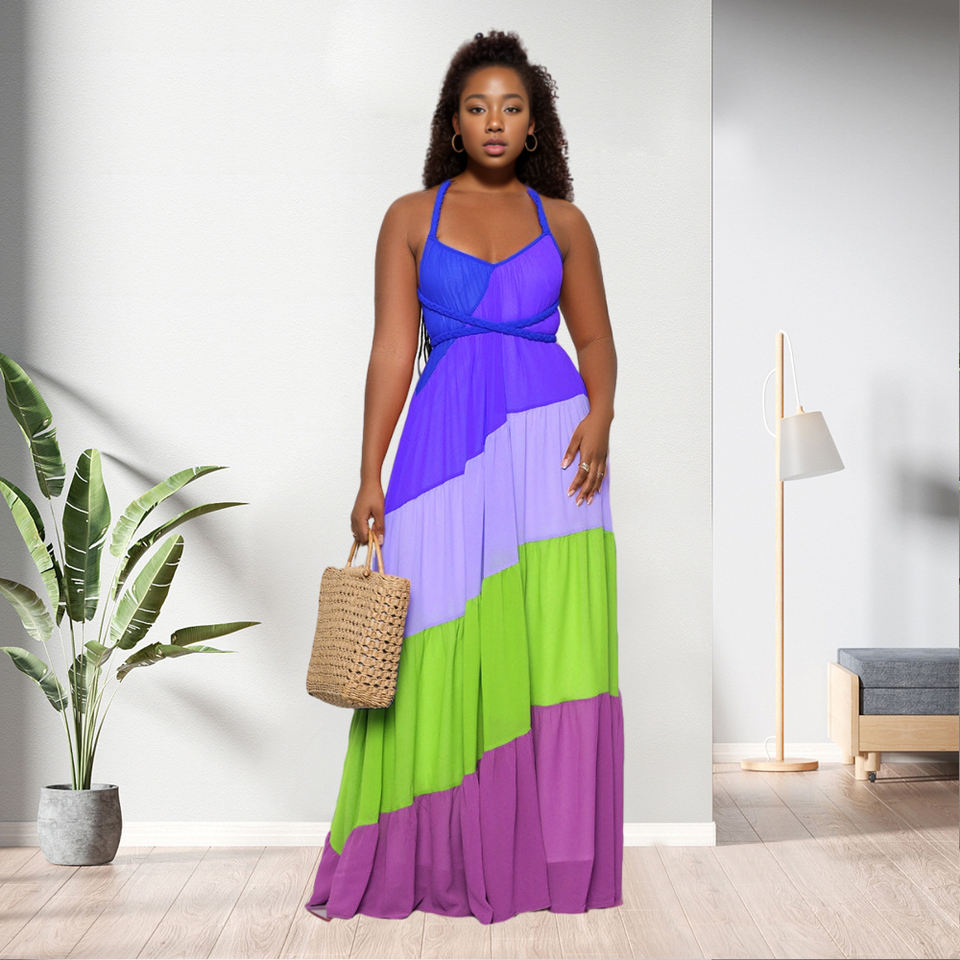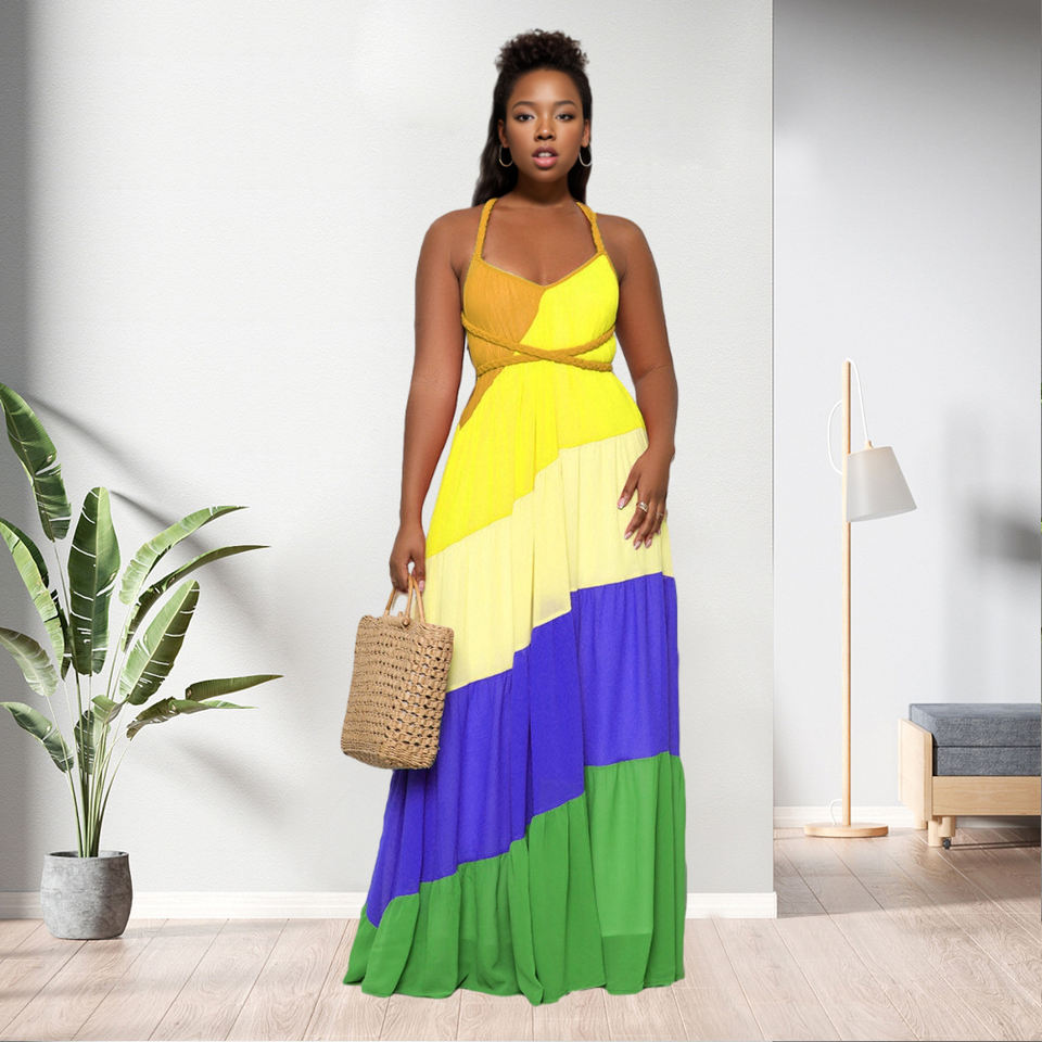 Robe longue décontractée contrastée sans dos pour femme – Vente en gros