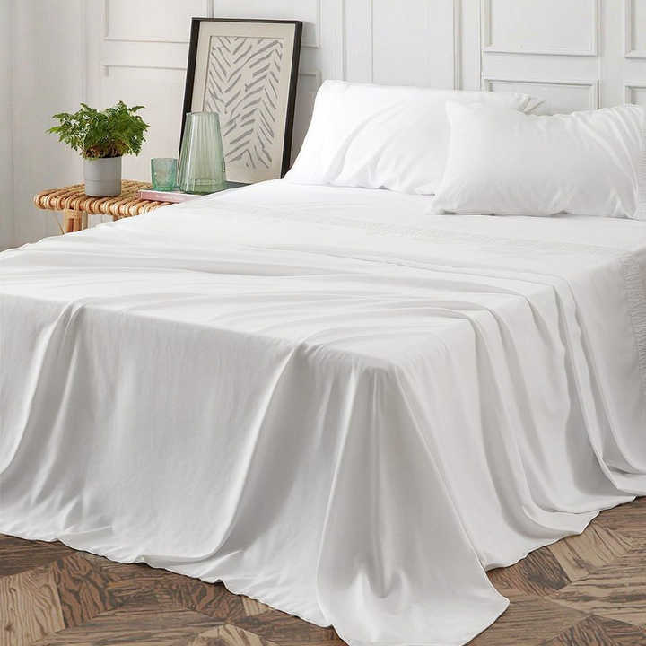 Vente en gros pas cher 1800 fils ensembles de draps plats drap housse à motif solide pour la maison hôtel ou hôpital doux taille double